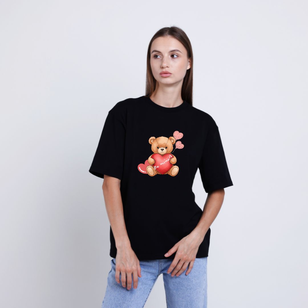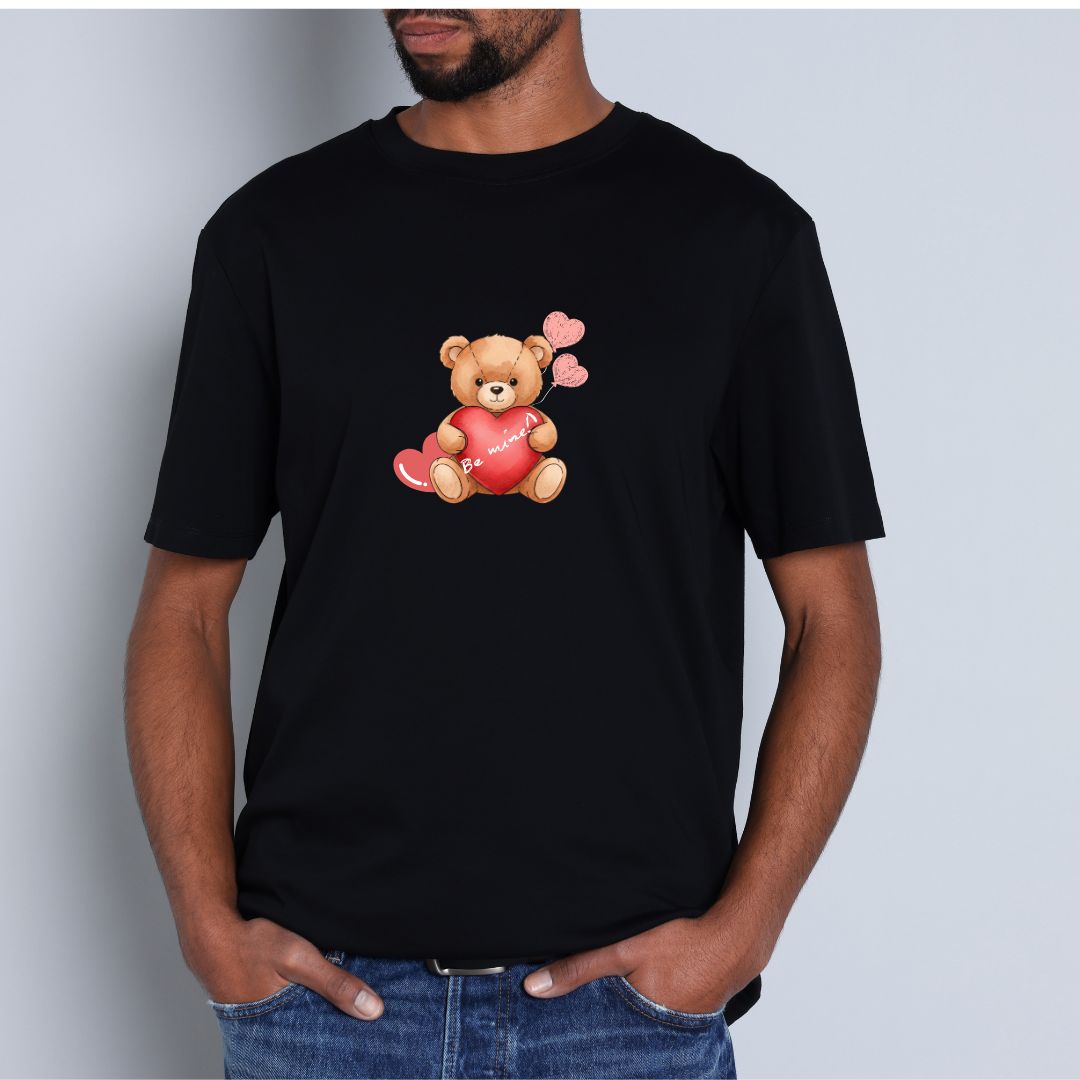 Добавете щипка любов и сладост към визията си с тази очарователна тениска с илюстрация на мече, което държи сърце с надпис „Be Mine“. Дизайнът излъчва топлина, нежност и романтика – идеален избор за двойки и специални поводи.
